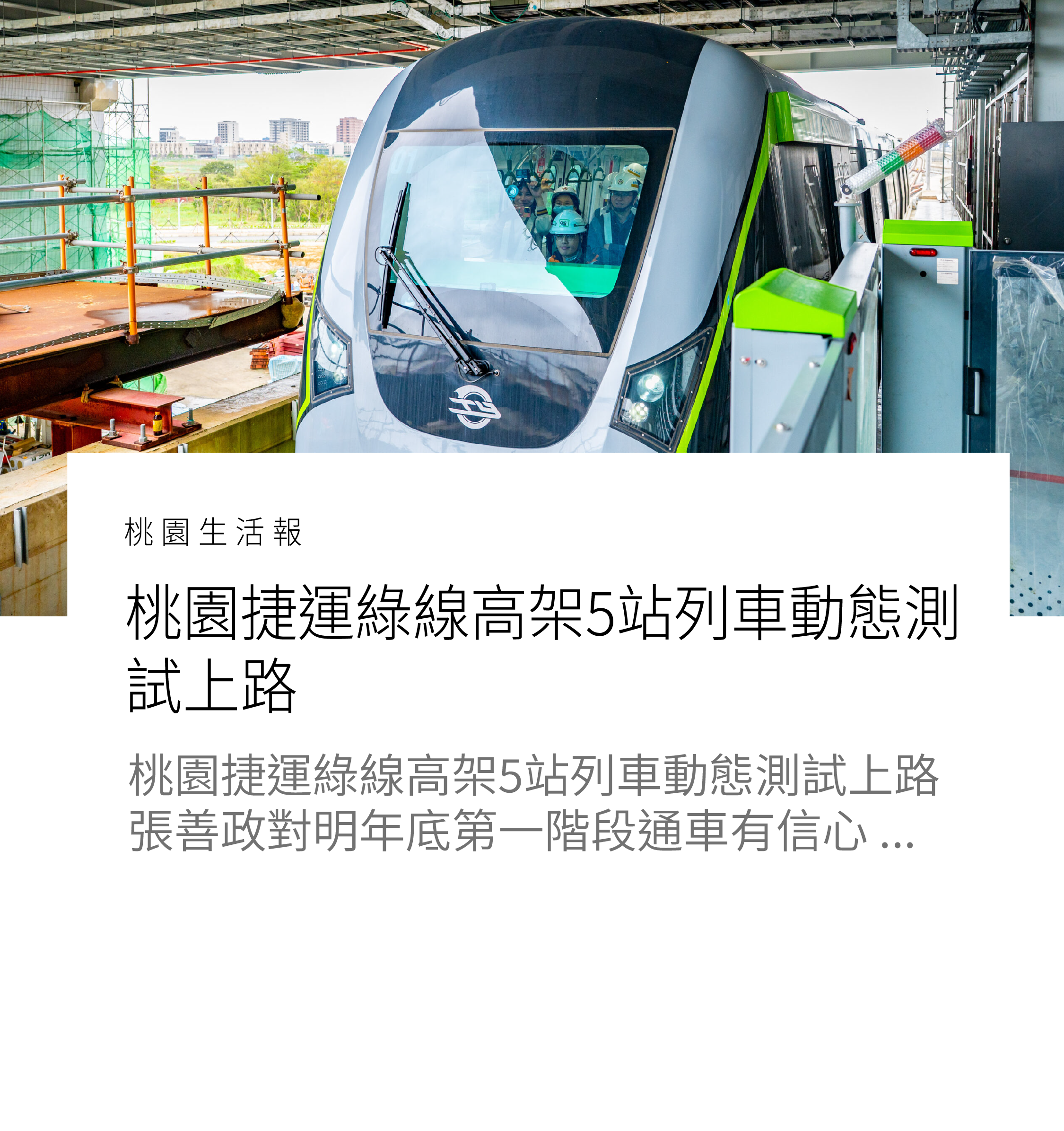【地產快訊】桃園捷運綠線高架5站列車動態測試上路 張善政對明年底第一階段通車有信心 桃園市長張善 […]