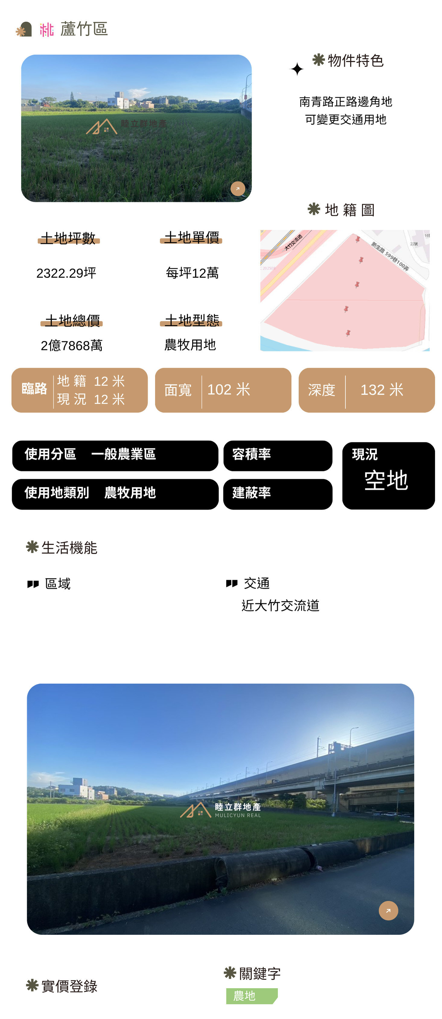 12萬 蘆竹區 蘆竹-南青路正路邊一般農
